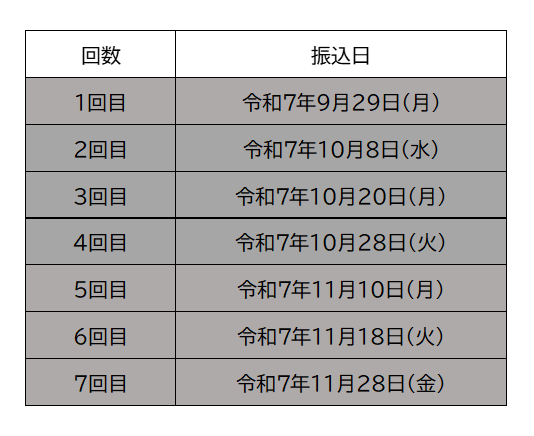 なお、申請期限まで提出いただいた方全員の給付は、7回目の11月28日(金曜日)で完了となっております。